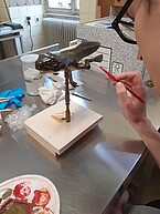 Aufgrund ihres Alters und ihres langen Einsatzes im Schuldienst hatten die Modelle gründliche Reinigungs- und Restaurierungsarbeiten nötig, die von Wirbeltierpräparator Friedbert Kiszler und der Bundesfreiwilligendienstleistenden Lena Nikl sorgfältig und mit Liebe zum Detail vorgenommen wurden: