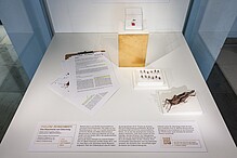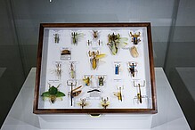 Da wir aber nicht alle unsere Schätze in den Ausstellungen präsentieren können, bringen wir im vierteljährlichen Wechsel ausgewählte Tiere, Gesteine, Fossilien oder Mineralien aus den Magazinen für Sie ans Tageslicht und präsentieren sie in einer Sondervitrine. Dazu erklären wir, woher sie stammen, was sie kennzeichnet und welche Bedeutung sie für unsere Sammlungen haben.
